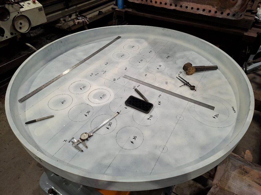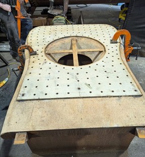 Removal of the copper doorplate confirmed our fears that the platework around the Firehole door joint was riddled with cracks, and the welding had caused them to open up becoming cavities below the surface of the platework. Further examination of the replacement lap sections fitted by Eastleigh showed the penetration, and quality of the weld to be even worse than first feared. Star cracking radiating from many of the stay holes like that discovered in the firebox side sheets was also discovered. With copper welding being a very expensive exercise, due to the helium shielding gas and copper filler rods the costs to try and repair the Doorplate could be as much as 75% of the cost of a replacement, and there may still be unseen issues in other parts of the platework, that could cause us trouble in the future. We were fortunate to discover that the NYMR has a former for flanging this item and as it is almost identical to the 80xxx class locos it could be used. They have kindly agreed to let us use the former in return for a donation to one of their locomotive appeals, the fact that we don’t need to manufacture a former has saved us a considerable amount of money and is a great example of locomotive owning groups working together.