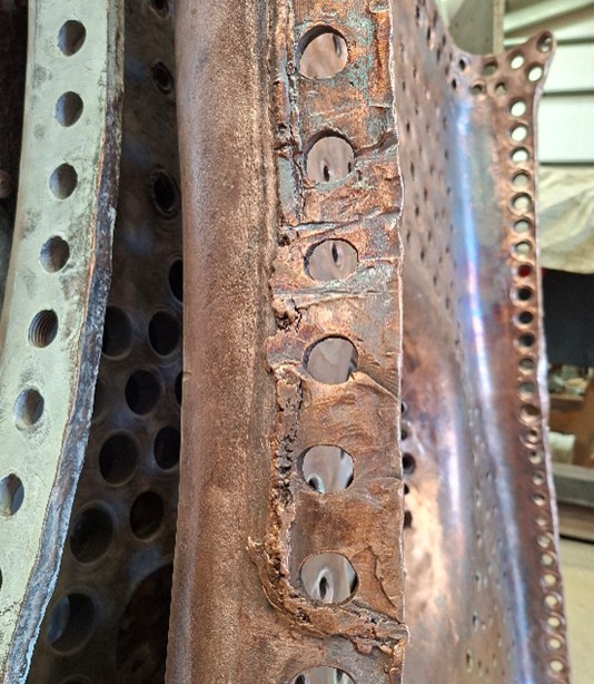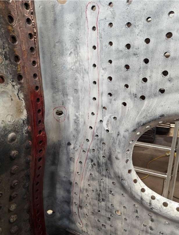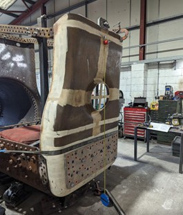 There is an alternative repair which could be done and that is to cut out the areas of the Backhead where the stays are fitted and weld in new platework. This would eradicate the cracks and enable first size stays to be fitted, but we would still have laminated steel in the corner radiuses which could cause issues when welding in the new platework. The amount of linear welding would also be considerable, so the costs of welding would be greater. Currently we are considering this repair to be a last resort if the costs of a replacement Backhead prove to be considerably more than expected.